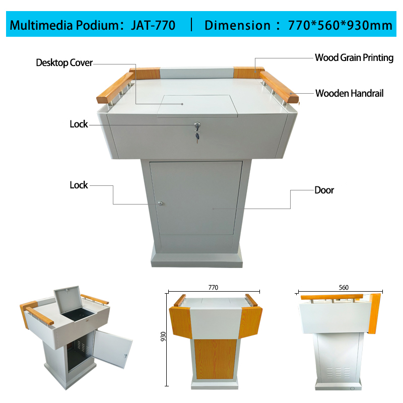 2. The podium is made of high-quality cold-rolled steel plate with no joints, and the edges and corners are designed with circular arcs to ensure student safety. It has strong impact resistance and superior anti-theft performance.