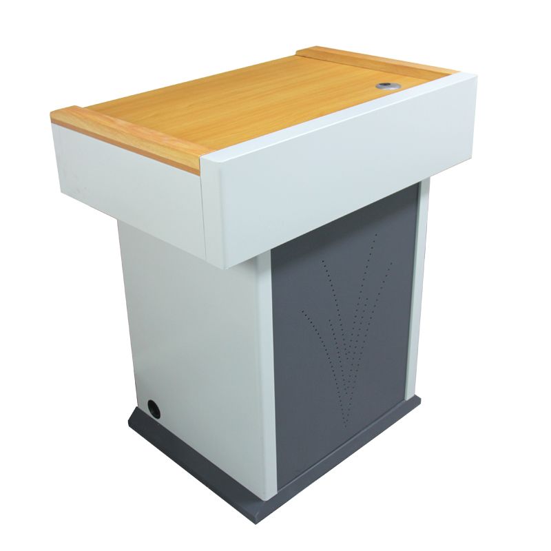 材料及加工工艺:全钢质多媒体讲台,主体钢构框架及柜身衬板均采用优质冷轧钢板,经数控加工一次成型,整体液压拉伸成型,无接缝,整体造型设计以人为本,边角圆弧过渡,表面平整性优越,工艺精湛,高贵大方。