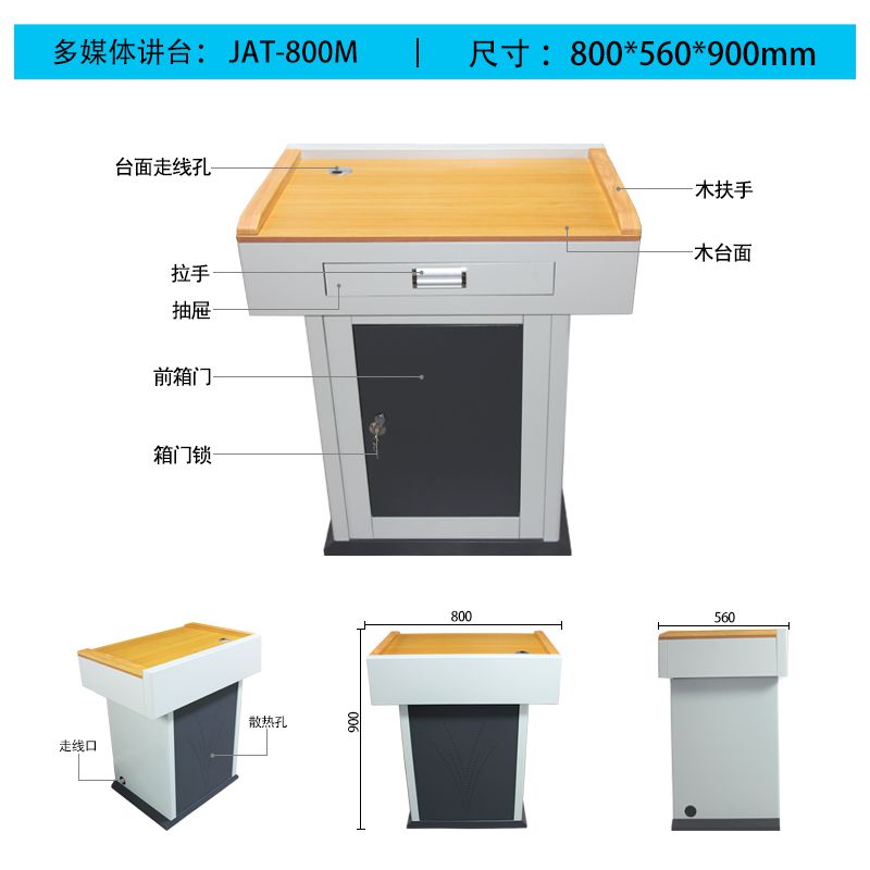 5、讲台四周采用圆弧过渡,避免发生磕碰造成伤害,整体结构紧凑,空间设计合理。